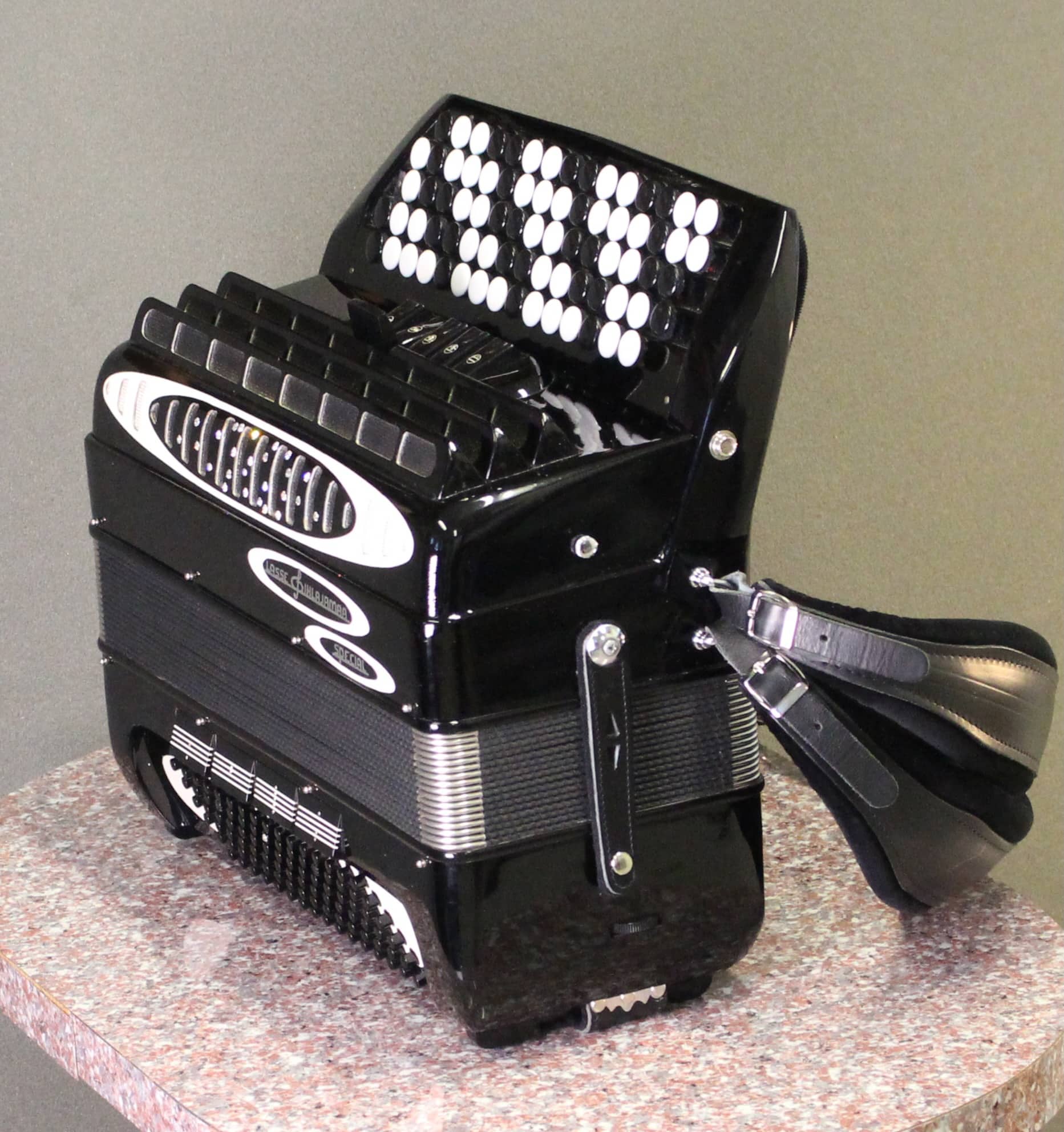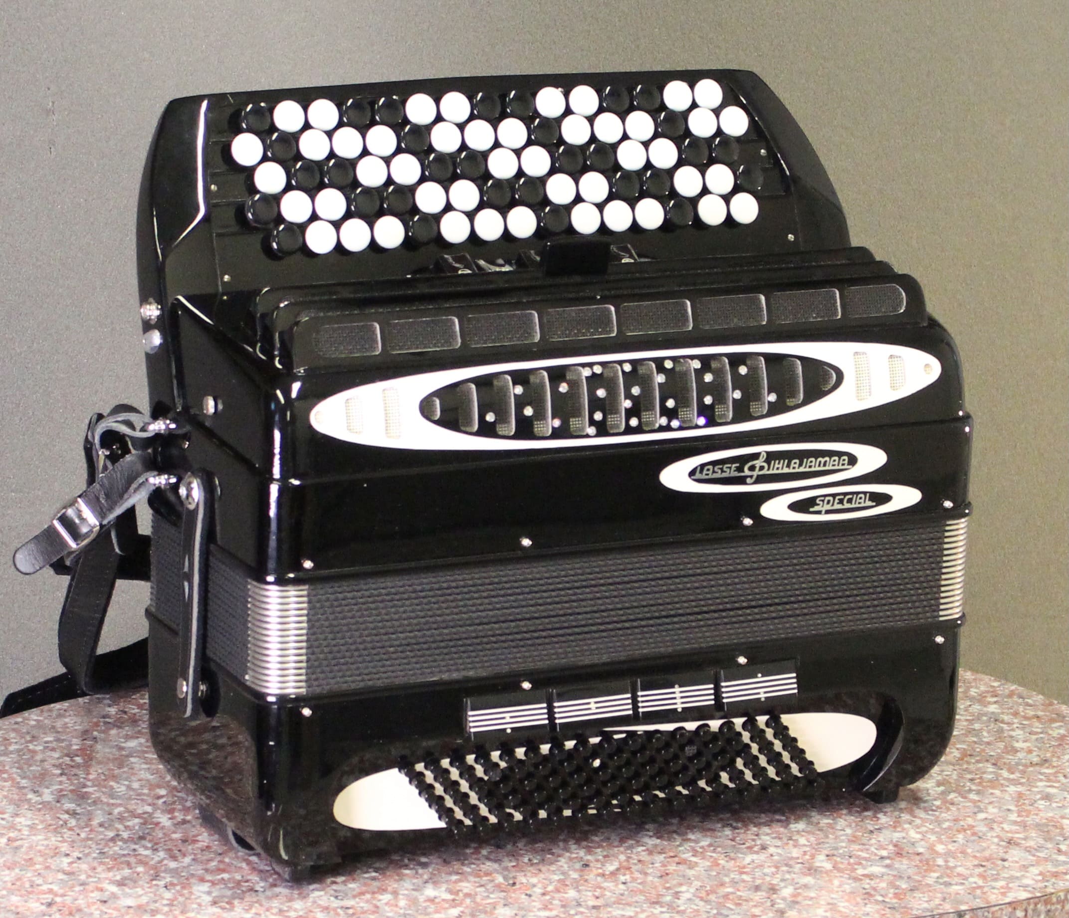 Todella hieno 80-luvun LP nuorisomalli, joka sopii myös aikuisen syliin. Tämä soitin on saanut asiallista huolenpitoa ja hellää käyttöä osakseen. Se on lähes virheetön edelleen ja soinniltaan tarkka ja voimakas. Heleät valssiäänet ja murea master. Bassokin soi kuin isommassa haitarissa konsanaan.