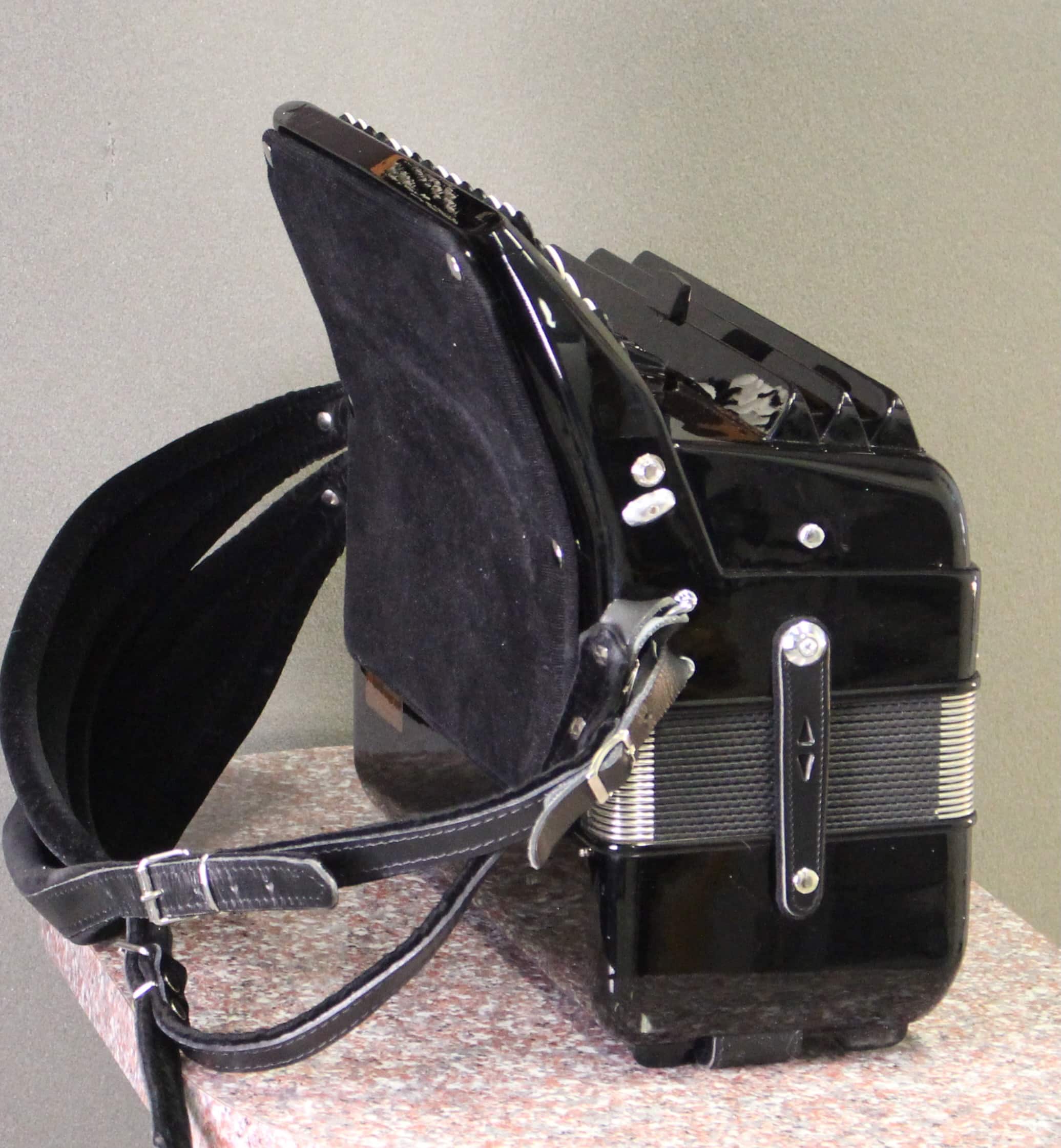Mukana hyvät leveät olkaremmit ja kantoreppu. Bassoremmi hyvässä kunnossa. Paljesuoja uusi.